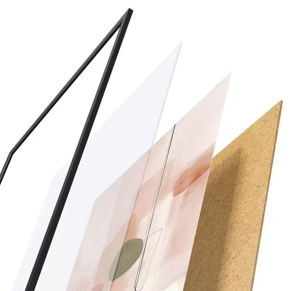 Das Poster besteht aus einem Rahmen, Plexiglas, einem gedruckten Bild und einer Rückwand aus Spanplatten. Dank der Halterungen auf der Rückseite kann das Poster sofort an die Wand gehängt werden.