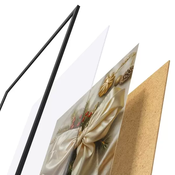 Das Poster besteht aus einem Rahmen, Plexiglas, einem gedruckten Bild und einer Rückwand aus Spanplatten. Dank der Halterungen auf der Rückseite kann das Poster sofort an die Wand gehängt werden.