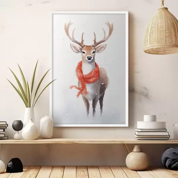 Poster Hirsch mit Schal f46594