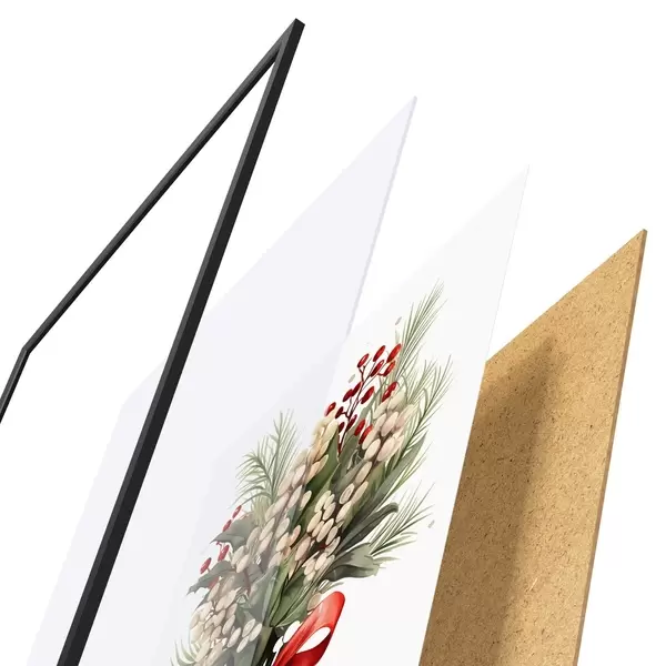 Das Poster besteht aus einem Rahmen, Plexiglas, einem gedruckten Bild und einer Rückwand aus Spanplatten. Dank der Halterungen auf der Rückseite kann das Poster sofort an die Wand gehängt werden.