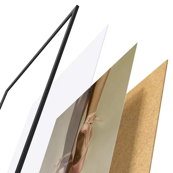 Das Poster besteht aus einem Rahmen, Plexiglas, einem gedruckten Bild und einer Rückwand aus Spanplatten. Dank der Halterungen auf der Rückseite kann das Poster sofort an die Wand gehängt werden.