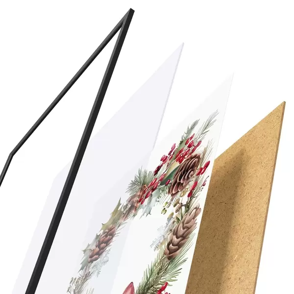 Das Poster besteht aus einem Rahmen, Plexiglas, einem gedruckten Bild und einer Rückwand aus Spanplatten. Dank der Halterungen auf der Rückseite kann das Poster sofort an die Wand gehängt werden.