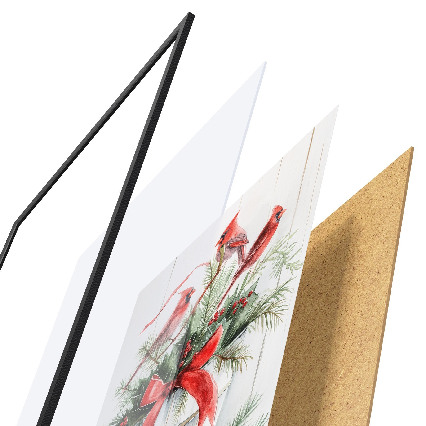 Das Poster besteht aus einem Rahmen, Plexiglas, einem gedruckten Bild und einer Rückwand aus Spanplatten. Dank der Halterungen auf der Rückseite kann das Poster sofort an die Wand gehängt werden.