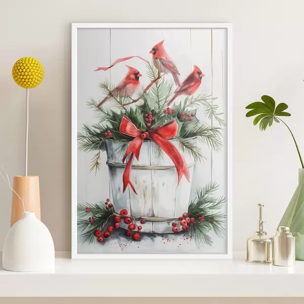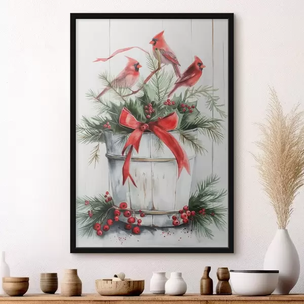 Poster Vögel auf einem Weihnachtstopf Nr f46607