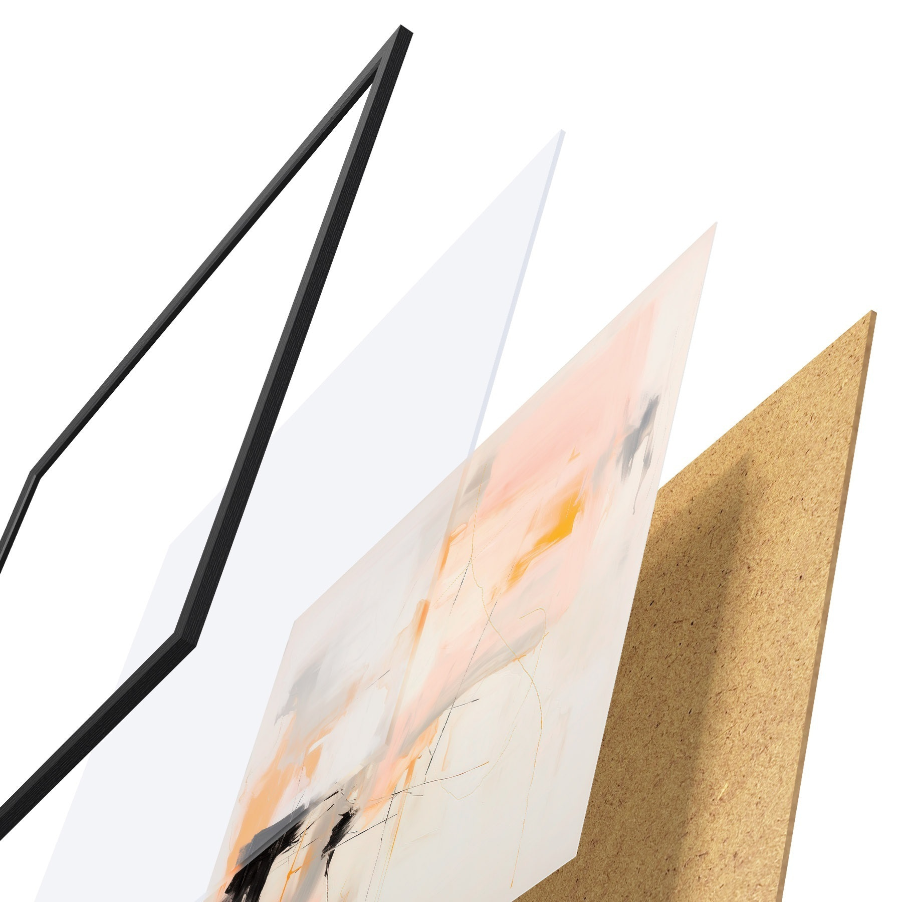 Das Poster besteht aus einem Rahmen, Plexiglas, einem gedruckten Bild und einer Rückwand aus Spanplatten. Dank der Halterungen auf der Rückseite kann das Poster sofort an die Wand gehängt werden.