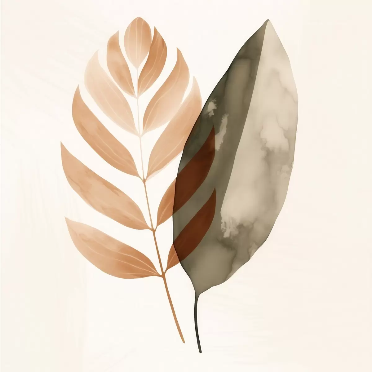 Poster Ein Duo aus Blattsilhouetten im abstrakten Aquarellstil Nr f46645