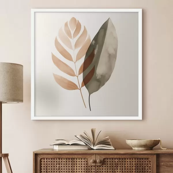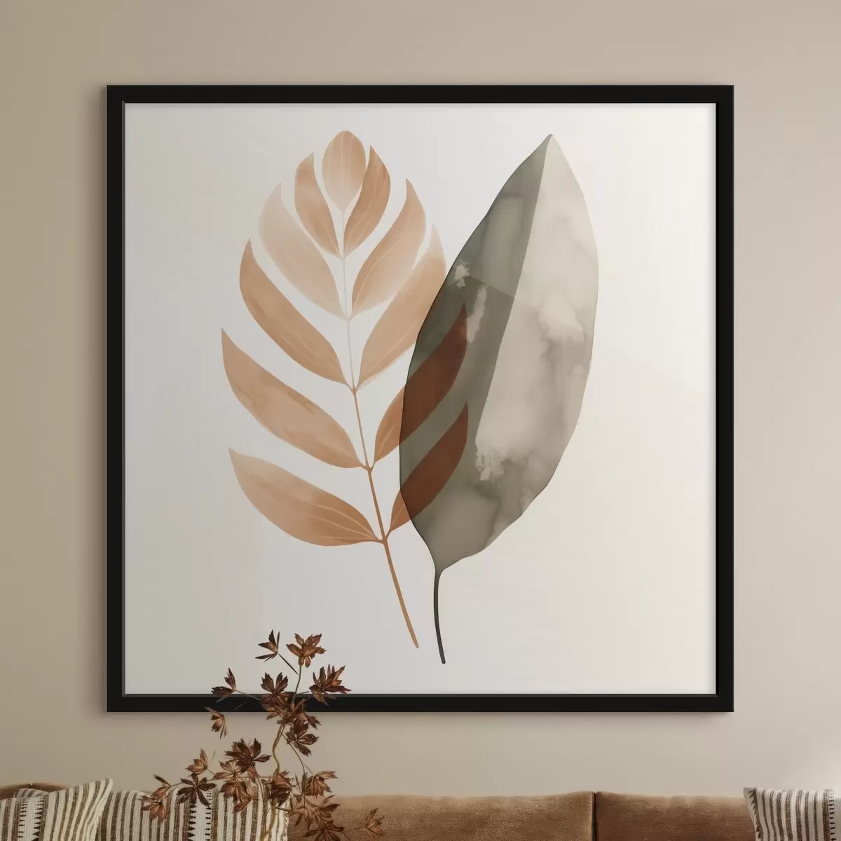 Poster Ein Duo aus Blattsilhouetten im abstrakten Aquarellstil f46645