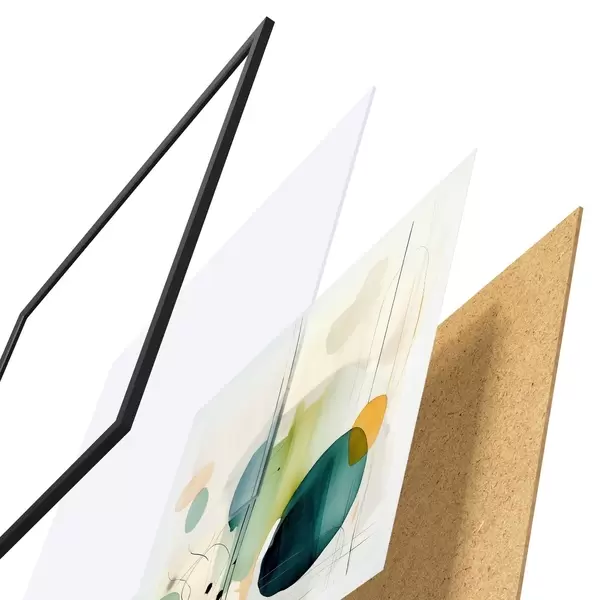Das Poster besteht aus einem Rahmen, Plexiglas, einem gedruckten Bild und einer Rückwand aus Spanplatten. Dank der Halterungen auf der Rückseite kann das Poster sofort an die Wand gehängt werden.