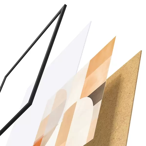 Das Poster besteht aus einem Rahmen, Plexiglas, einem gedruckten Bild und einer Rückwand aus Spanplatten. Dank der Halterungen auf der Rückseite kann das Poster sofort an die Wand gehängt werden.