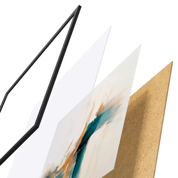 Das Poster besteht aus einem Rahmen, Plexiglas, einem gedruckten Bild und einer Rückwand aus Spanplatten. Dank der Halterungen auf der Rückseite kann das Poster sofort an die Wand gehängt werden.