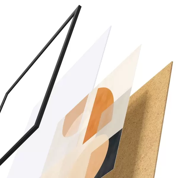 Das Poster besteht aus einem Rahmen, Plexiglas, einem gedruckten Bild und einer Rückwand aus Spanplatten. Dank der Halterungen auf der Rückseite kann das Poster sofort an die Wand gehängt werden.