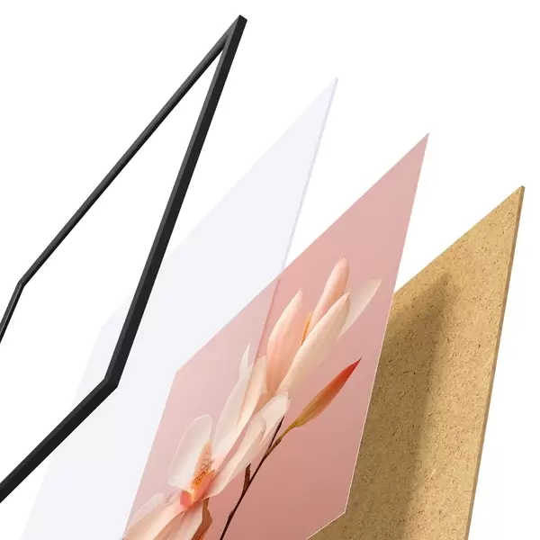 Das Poster besteht aus einem Rahmen, Plexiglas, einem gedruckten Bild und einer Rückwand aus Spanplatten. Dank der Halterungen auf der Rückseite kann das Poster sofort an die Wand gehängt werden.