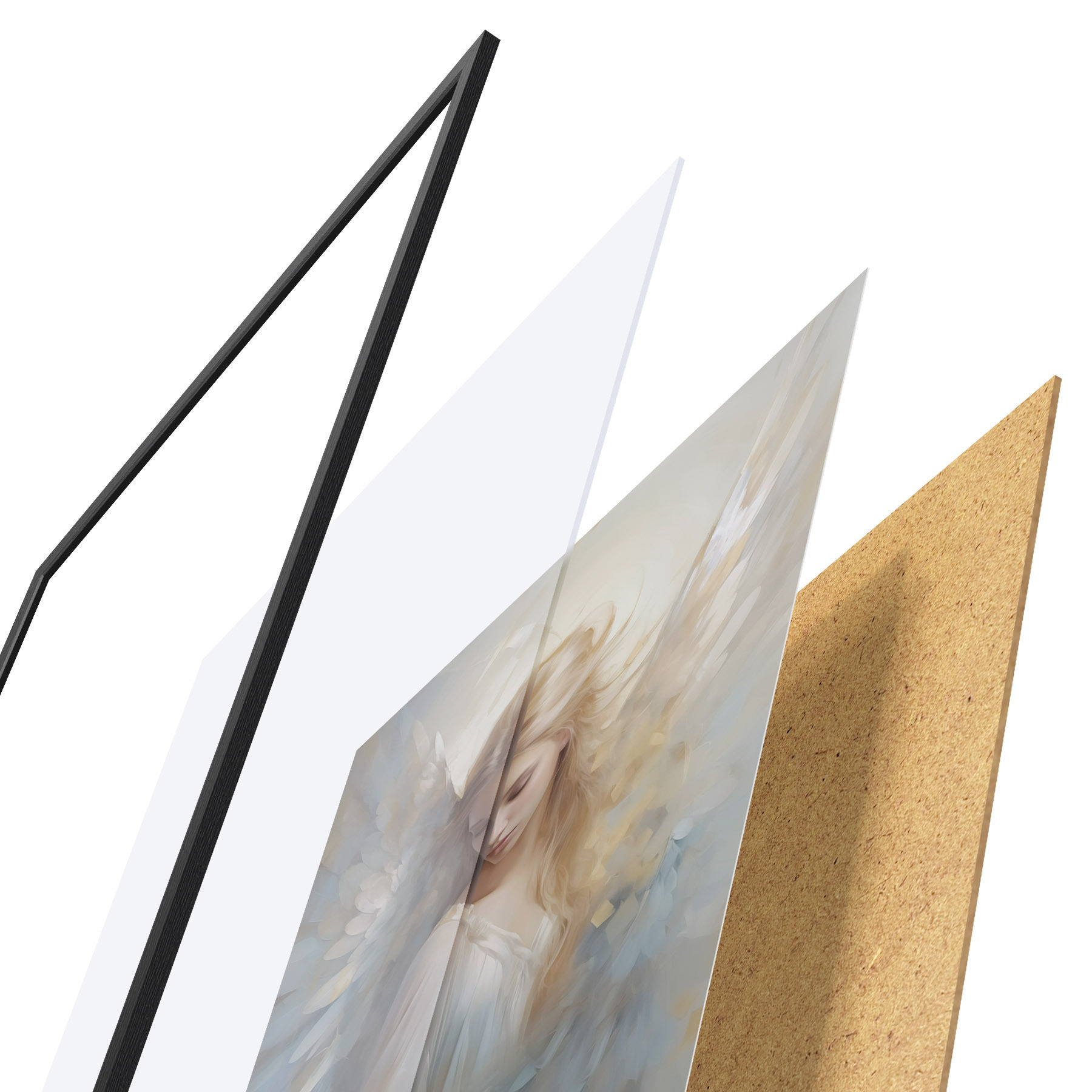 Das Poster besteht aus einem Rahmen, Plexiglas, einem gedruckten Bild und einer Rückwand aus Spanplatten. Dank der Halterungen auf der Rückseite kann das Poster sofort an die Wand gehängt werden.