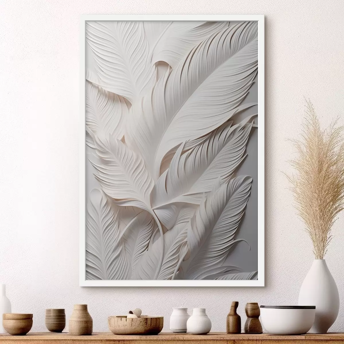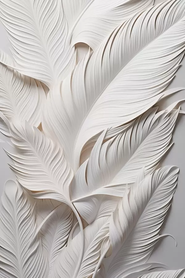 Poster Weiße Blätter mit filigranen Details, die einen strukturierten und vielschichtigen Effekt erzeugen, minimalistische Kunst Nr f46706
