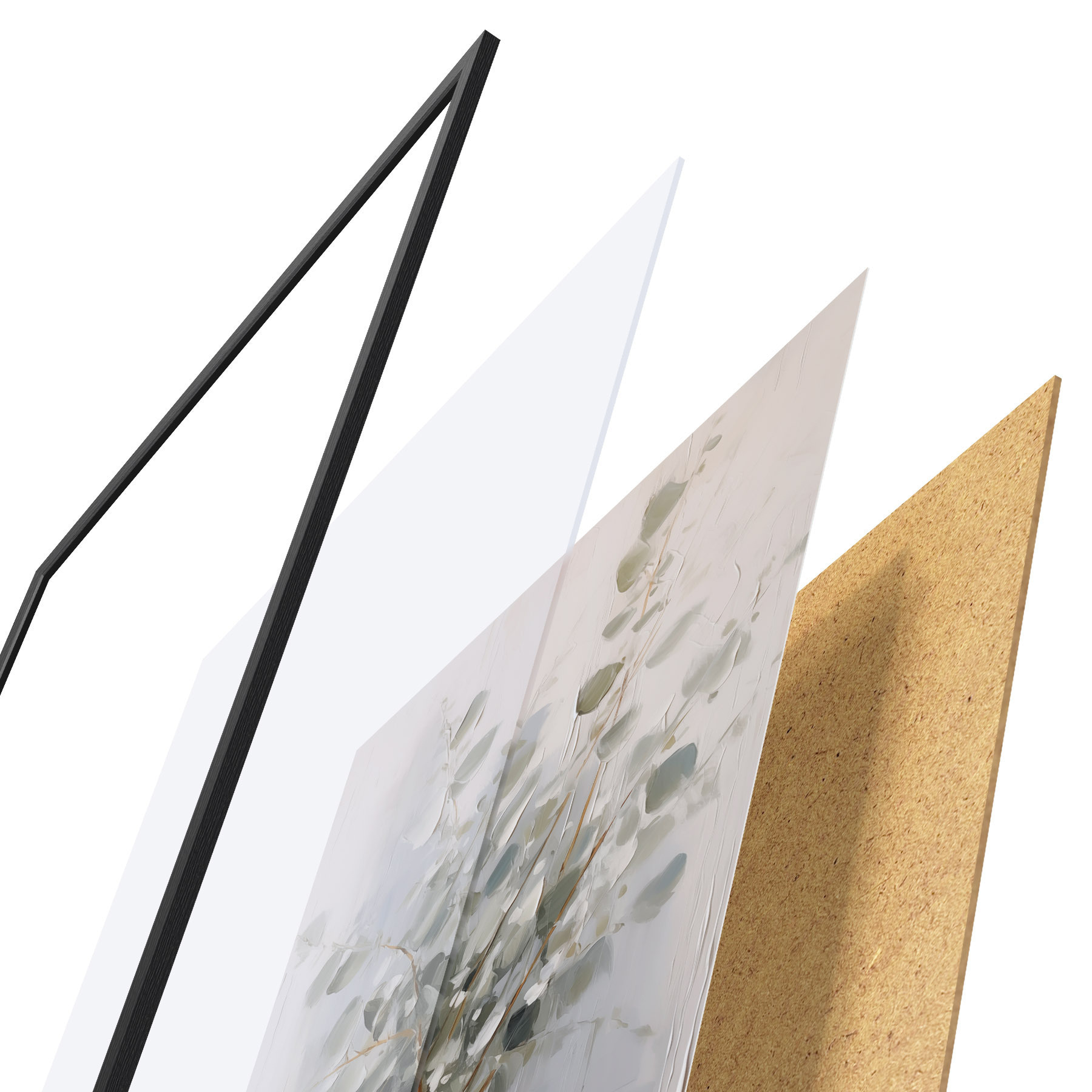 Das Poster besteht aus einem Rahmen, Plexiglas, einem gedruckten Bild und einer Rückwand aus Spanplatten. Dank der Halterungen auf der Rückseite kann das Poster sofort an die Wand gehängt werden.