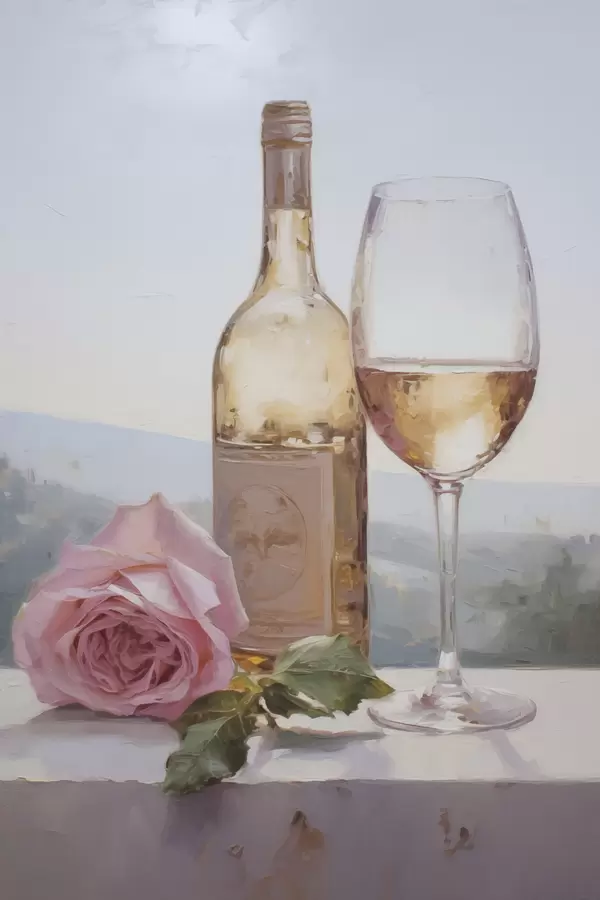 Poster Eine Flasche und ein Glas Wein und ein kleiner Hund mit Brille, Gemäldeimitation Nr f46721