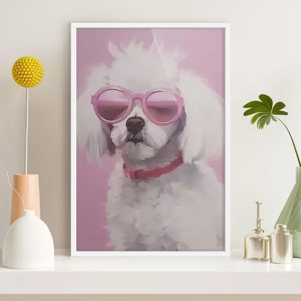 Poster Ein kleiner Hund mit Brille ist eine Nachahmung eines Gemäldes. Nr f46722