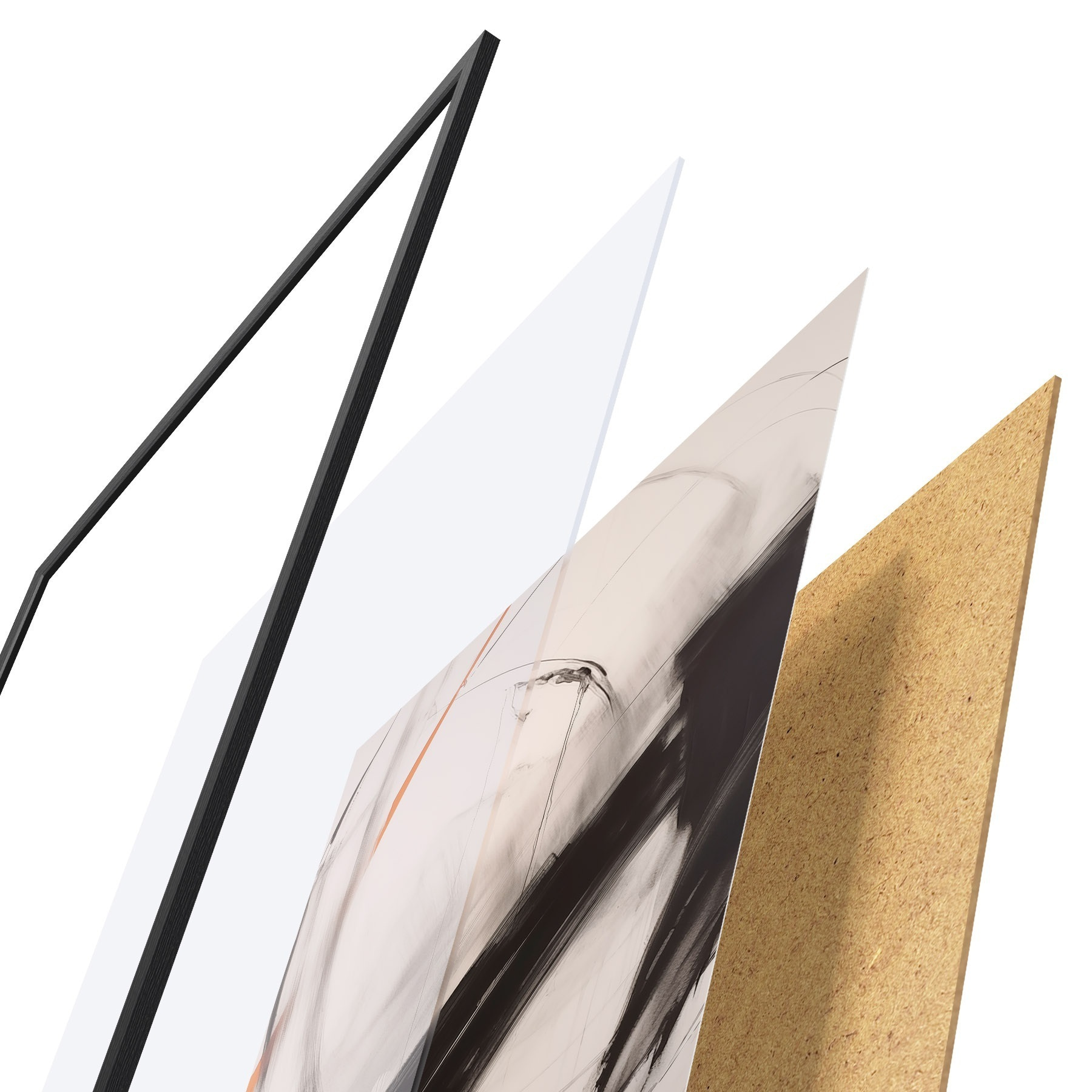 Das Poster besteht aus einem Rahmen, Plexiglas, einem gedruckten Bild und einer Rückwand aus Spanplatten. Dank der Halterungen auf der Rückseite kann das Poster sofort an die Wand gehängt werden.