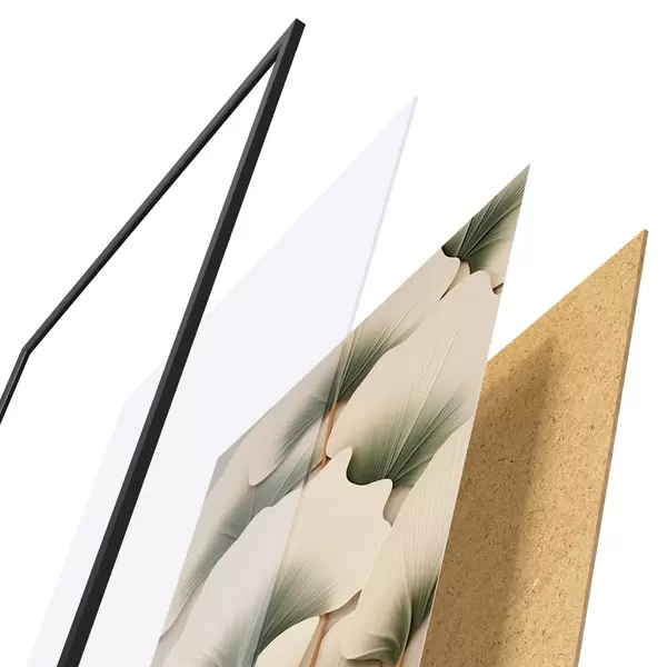 Das Poster besteht aus einem Rahmen, Plexiglas, einem gedruckten Bild und einer Rückwand aus Spanplatten. Dank der Halterungen auf der Rückseite kann das Poster sofort an die Wand gehängt werden.