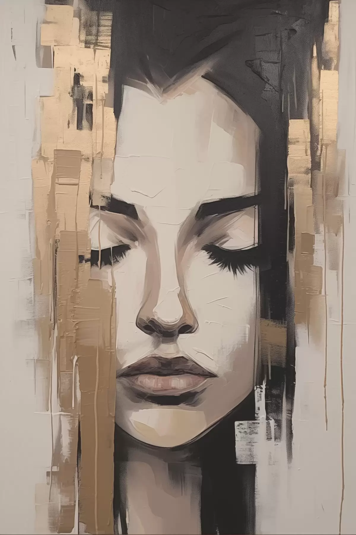 Poster Porträt einer Frau. Abstrakte Pinselstriche Nr f46733