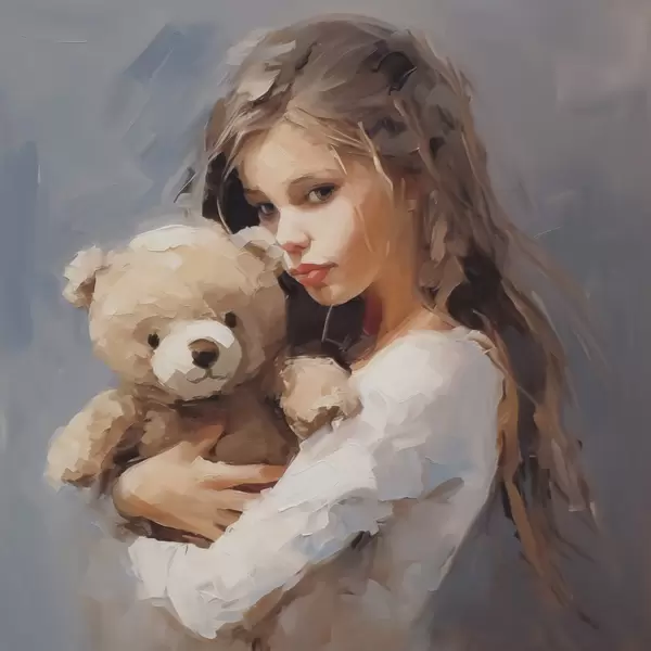 Poster Mädchen mit einem Spielzeugbären, Gemäldeimitation Nr f46746