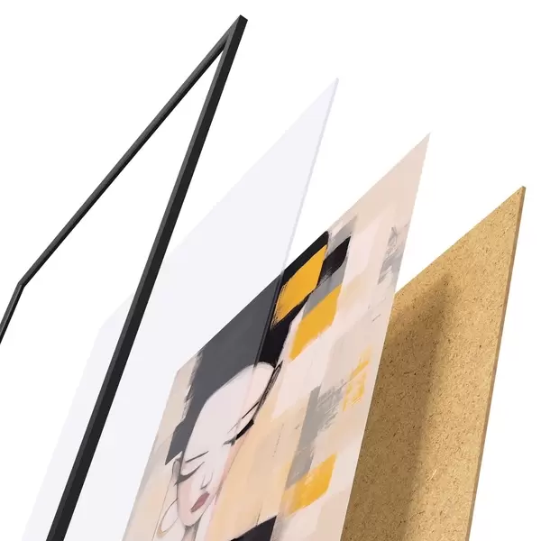Das Poster besteht aus einem Rahmen, Plexiglas, einem gedruckten Bild und einer Rückwand aus Spanplatten. Dank der Halterungen auf der Rückseite kann das Poster sofort an die Wand gehängt werden.