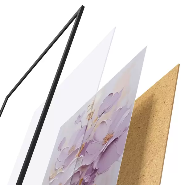 Das Poster besteht aus einem Rahmen, Plexiglas, einem gedruckten Bild und einer Rückwand aus Spanplatten. Dank der Halterungen auf der Rückseite kann das Poster sofort an die Wand gehängt werden.
