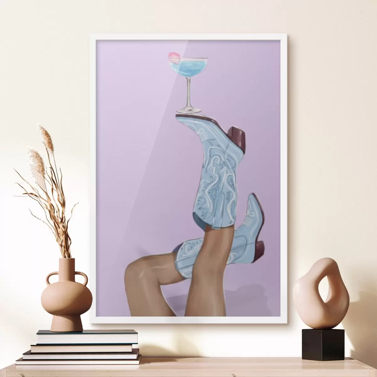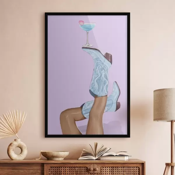 Poster Blaue Stiefel mit einem Glas Nr f46845