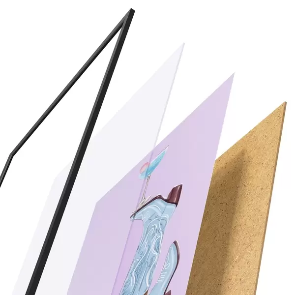 Das Poster besteht aus einem Rahmen, Plexiglas, einem gedruckten Bild und einer Rückwand aus Spanplatten. Dank der Halterungen auf der Rückseite kann das Poster sofort an die Wand gehängt werden.
