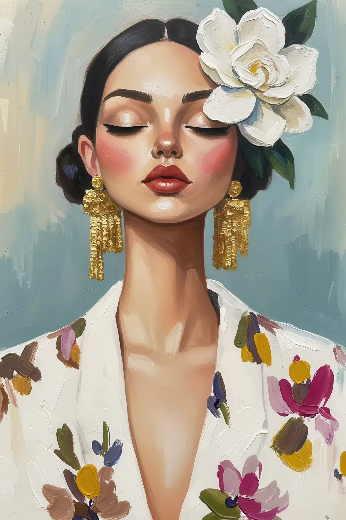 Poster Mädchen mit einer Blume im Haar Nr f46852