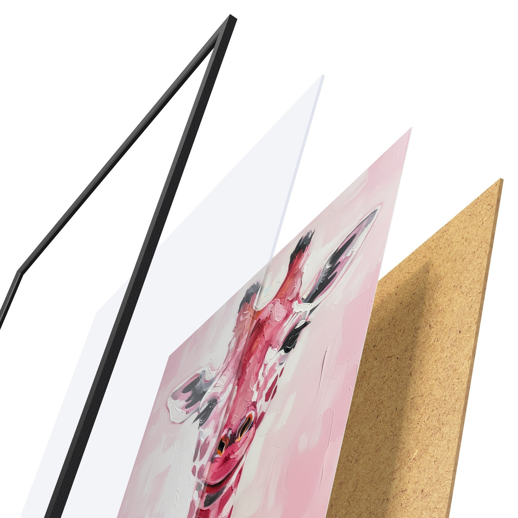Das Poster besteht aus einem Rahmen, Plexiglas, einem gedruckten Bild und einer Rückwand aus Spanplatten. Dank der Halterungen auf der Rückseite kann das Poster sofort an die Wand gehängt werden.