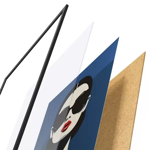Das Poster besteht aus einem Rahmen, Plexiglas, einem gedruckten Bild und einer Rückwand aus Spanplatten. Dank der Halterungen auf der Rückseite kann das Poster sofort an die Wand gehängt werden.