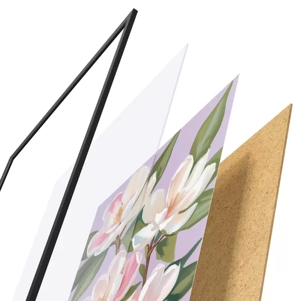 Das Poster besteht aus einem Rahmen, Plexiglas, einem gedruckten Bild und einer Rückwand aus Spanplatten. Dank der Halterungen auf der Rückseite kann das Poster sofort an die Wand gehängt werden.