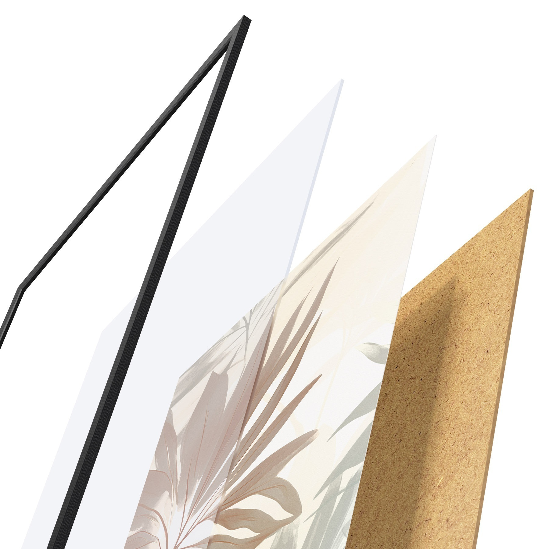 Das Poster besteht aus einem Rahmen, Plexiglas, einem gedruckten Bild und einer Rückwand aus Spanplatten. Dank der Halterungen auf der Rückseite kann das Poster sofort an die Wand gehängt werden.