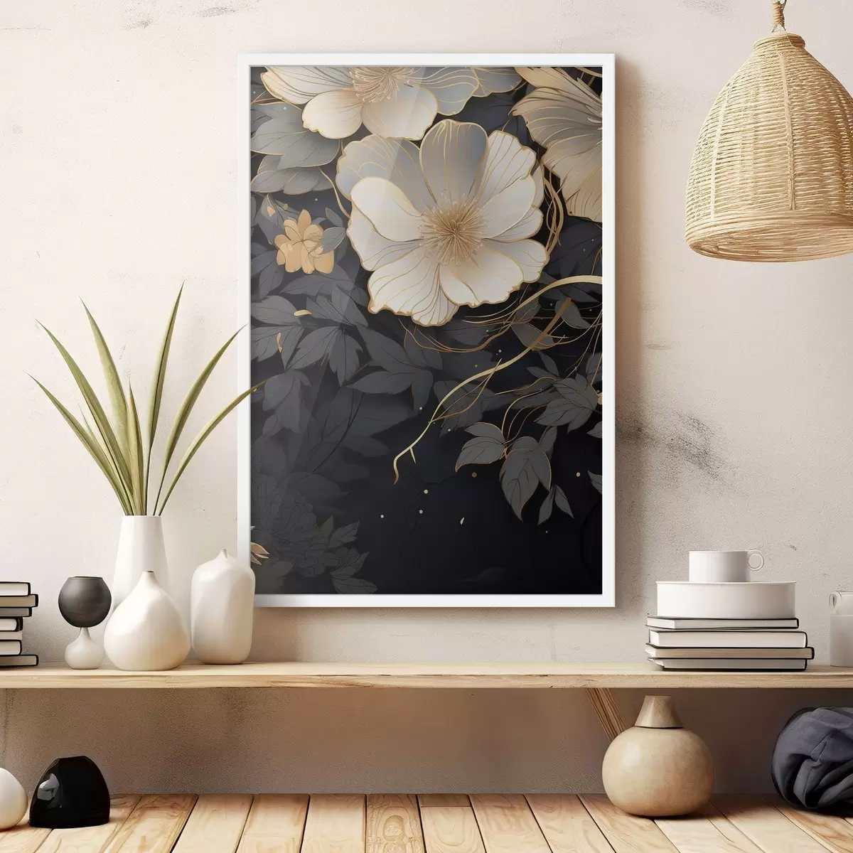 Poster Abstrakte Blumen auf einem dunklen Hintergrund Nr f46886