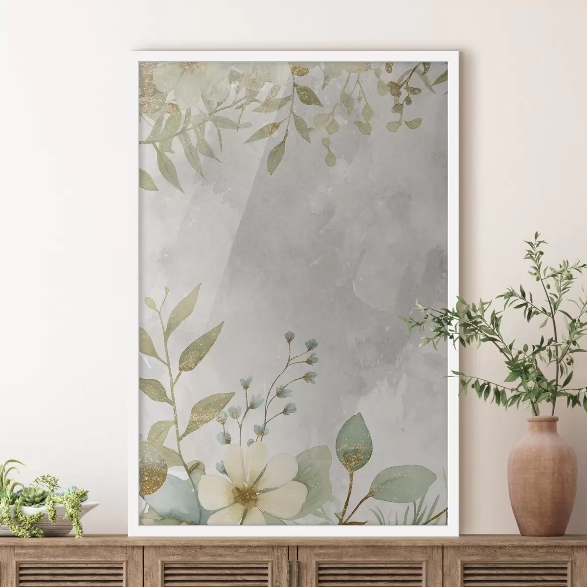 Poster Zarte Pflanzen auf hellem Hintergrund f46893