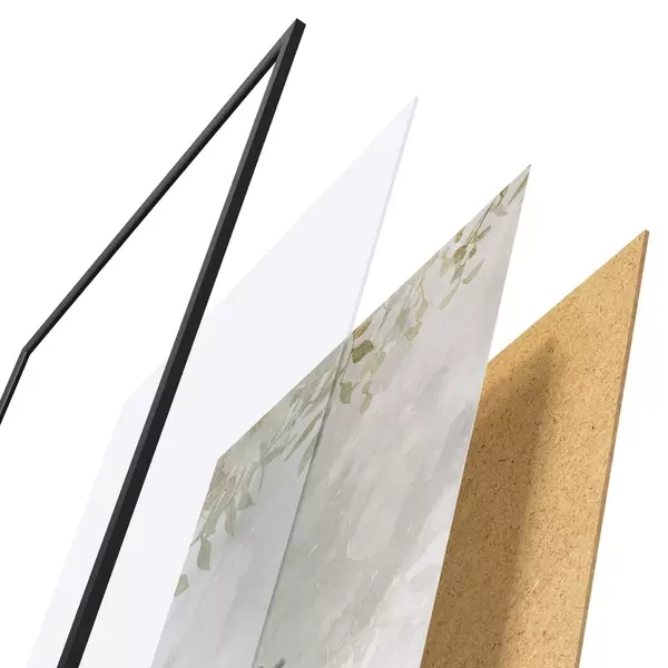 Das Poster besteht aus einem Rahmen, Plexiglas, einem gedruckten Bild und einer Rückwand aus Spanplatten. Dank der Halterungen auf der Rückseite kann das Poster sofort an die Wand gehängt werden.