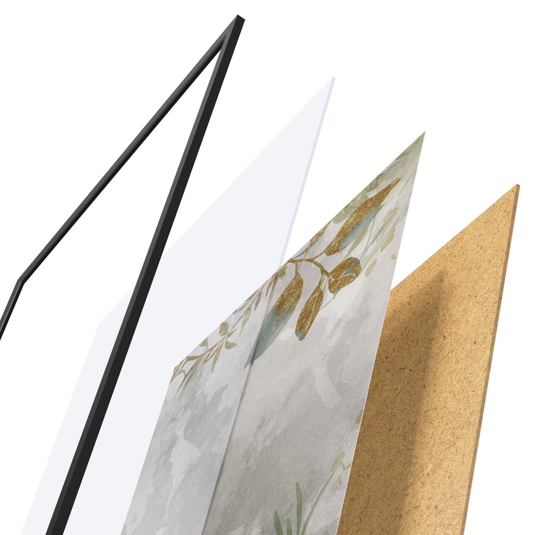 Das Poster besteht aus einem Rahmen, Plexiglas, einem gedruckten Bild und einer Rückwand aus Spanplatten. Dank der Halterungen auf der Rückseite kann das Poster sofort an die Wand gehängt werden.