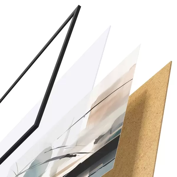 Das Poster besteht aus einem Rahmen, Plexiglas, einem gedruckten Bild und einer Rückwand aus Spanplatten. Dank der Halterungen auf der Rückseite kann das Poster sofort an die Wand gehängt werden.