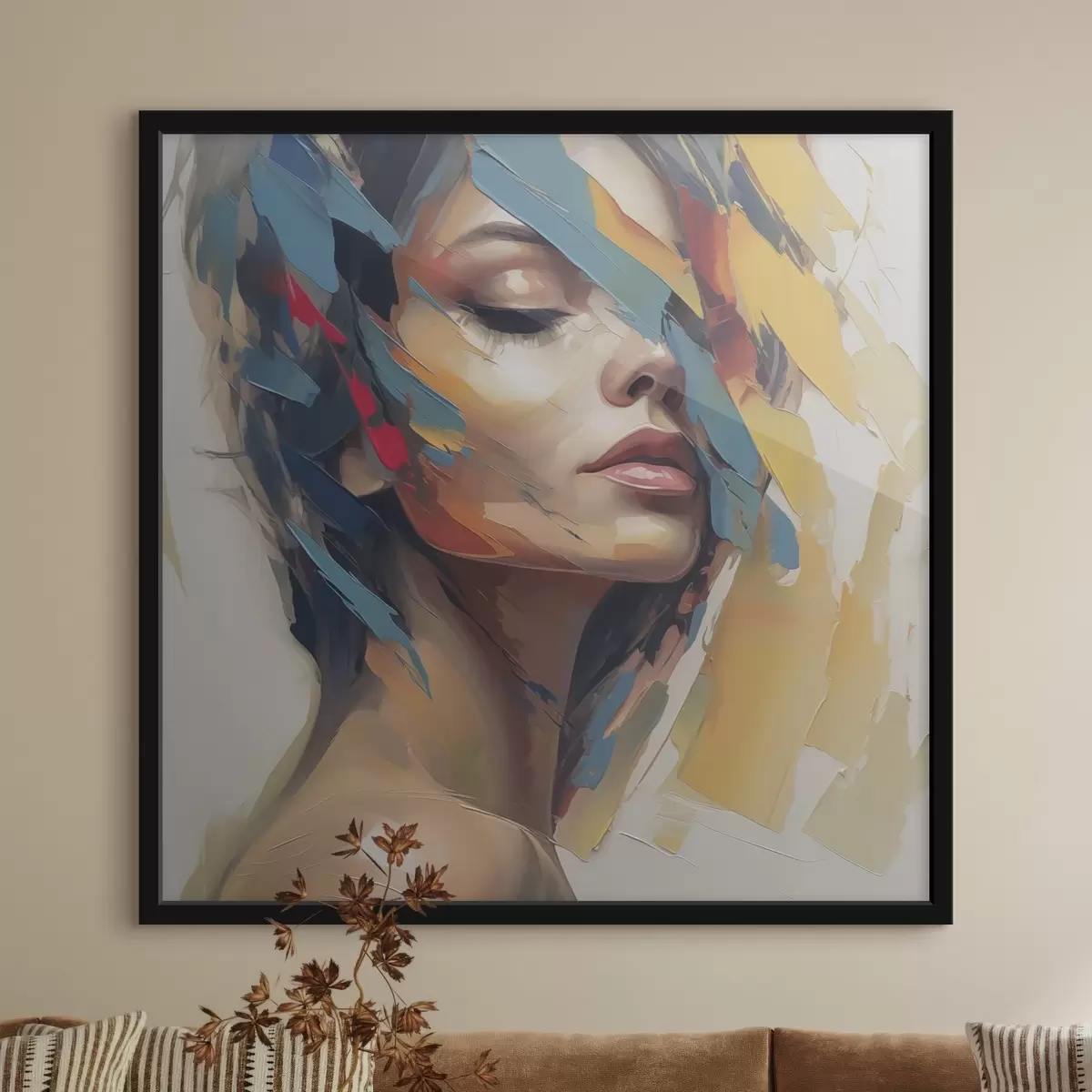 Poster Abstrakte weibliche Porträtimitation einer Malerei f46918