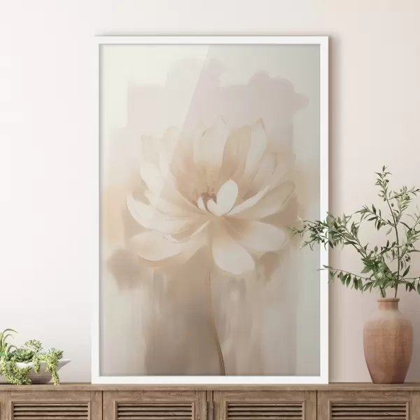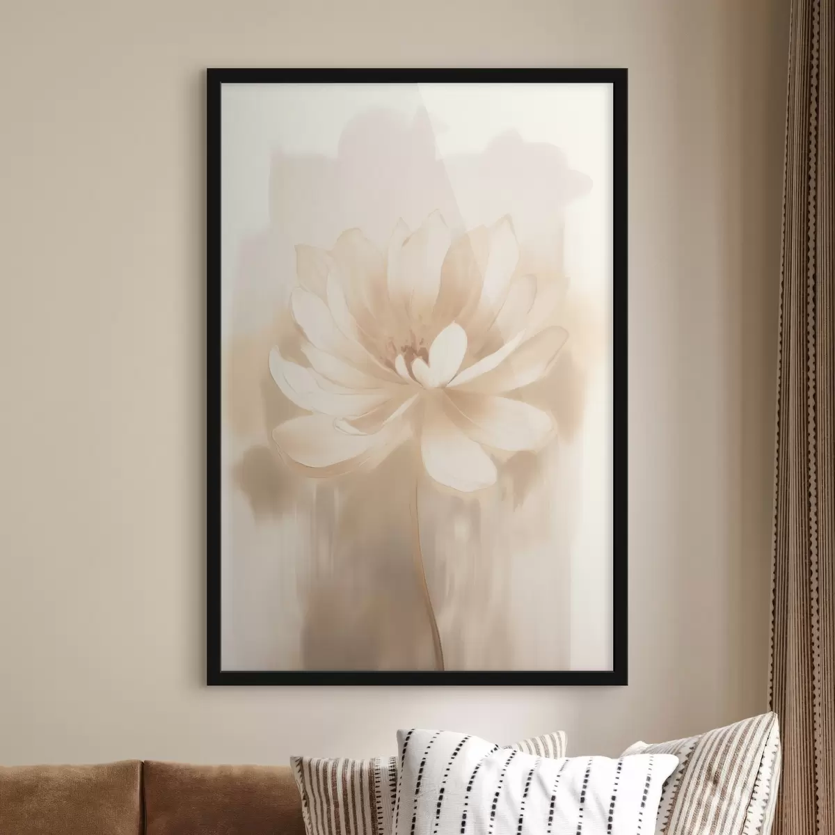Poster Lotus mit zarten Schatten und einem unscharfen Hintergrund im Stil eines künstlerischen Posters f46937