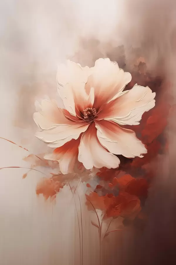 Poster Zarte weiße Korallenblume vor einem verschwommenen Hintergrund im Stil eines Ölgemäldes f46938