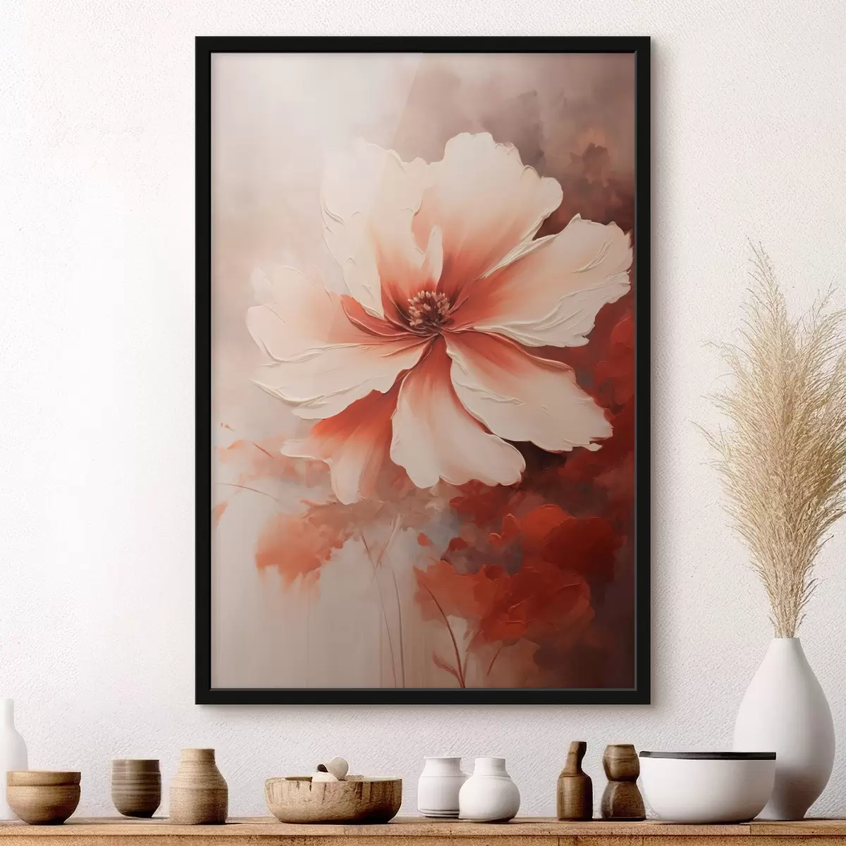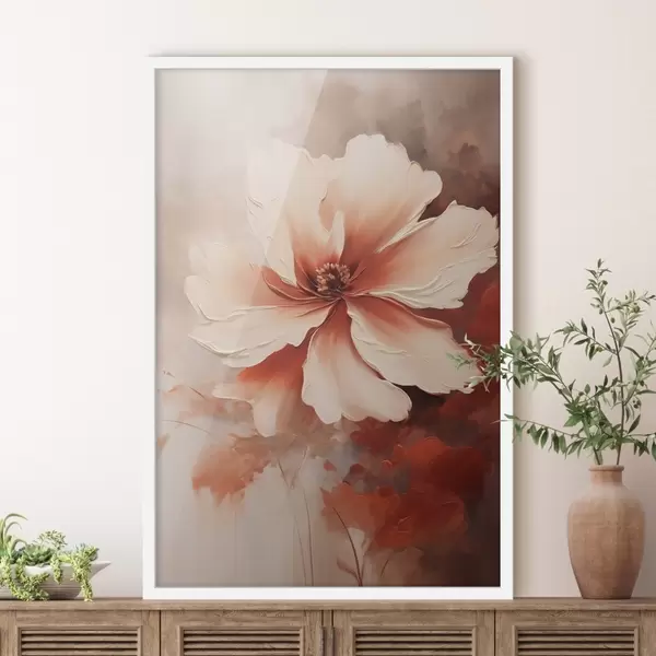 Poster Nahaufnahme einer weißen Korallenblume vor einem unscharfen Hintergrund im Stil eines Ölgemäldes Nr f46939