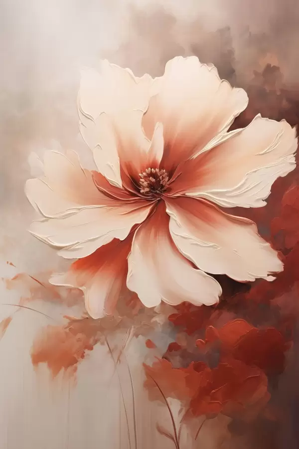 Poster Nahaufnahme einer weißen Korallenblume vor einem unscharfen Hintergrund im Stil eines Ölgemäldes Nr f46939