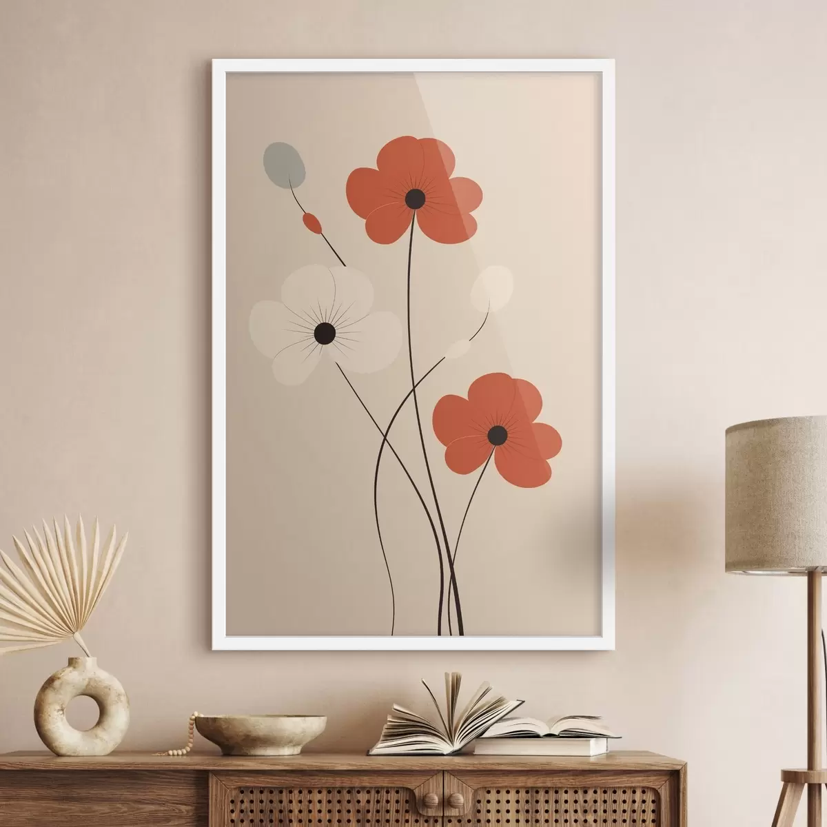 Poster Abstrakte Komposition mit dünnen Stielen und einfachen Formen im minimalistischen Stil Nr f46943