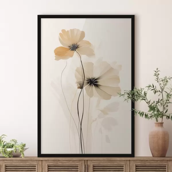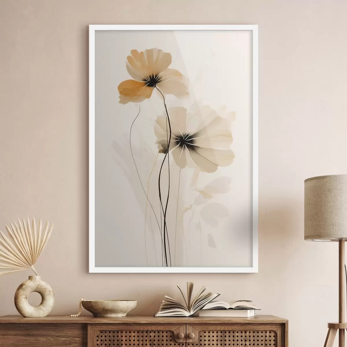 Poster Blumen in einer beige-pfirsichfarbenen Palette mit dunklen Zentren in minimalistischem Stil Nr f46945
