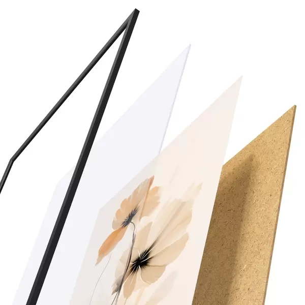 Das Poster besteht aus einem Rahmen, Plexiglas, einem gedruckten Bild und einer Rückwand aus Spanplatten. Dank der Halterungen auf der Rückseite kann das Poster sofort an die Wand gehängt werden.