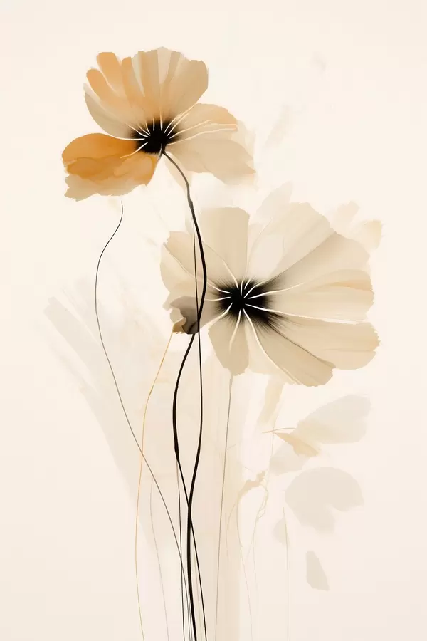 Poster Blumen in einer beige-pfirsichfarbenen Palette mit dunklen Zentren in minimalistischem Stil Nr f46945