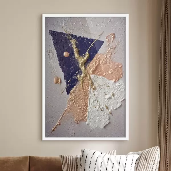 Poster Abstrakte Komposition mit einem dunkelblauen Dreieck und reliefartigen Pinselstrichen im Stil der Ölmalerei f46953