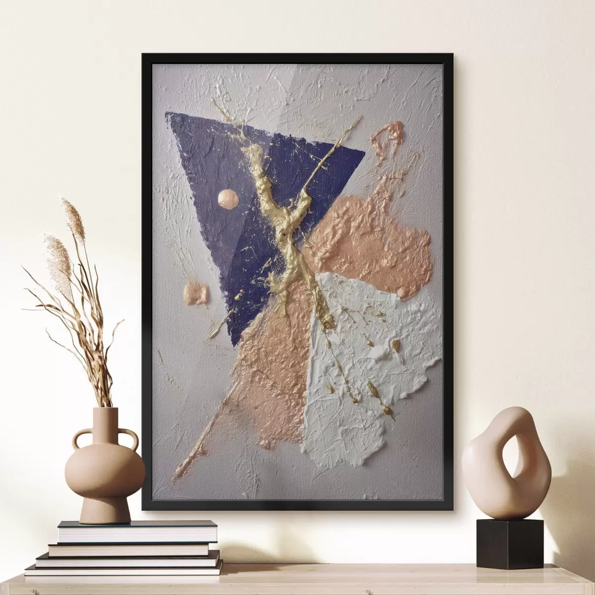 Poster Abstrakte Komposition mit einem dunkelblauen Dreieck und reliefartigen Pinselstrichen im Stil der Ölmalerei Nr f46953